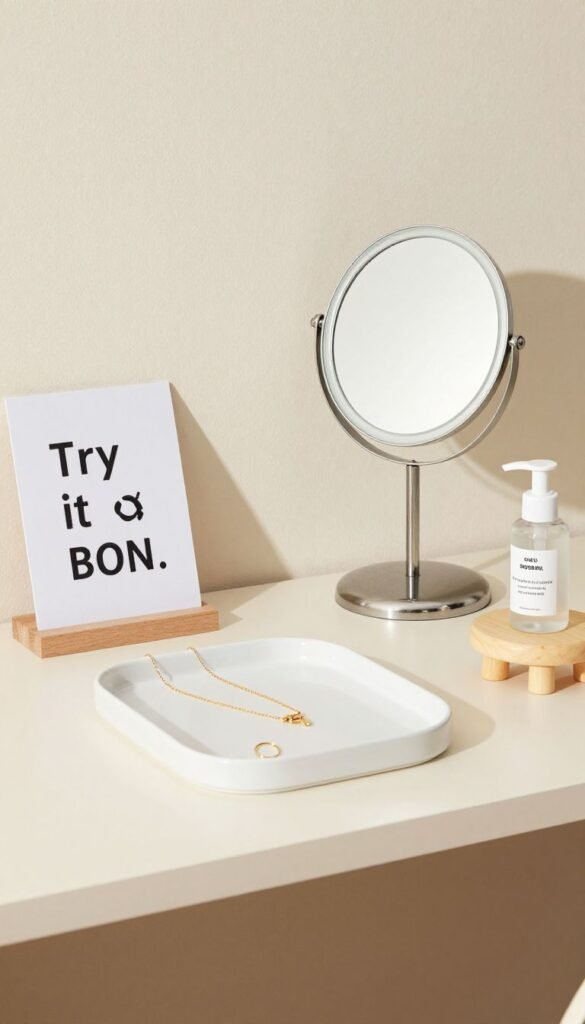 If they try, they buy. Add a small mirror and a clean tray for jewelry or accessories. Instant confidence boost.