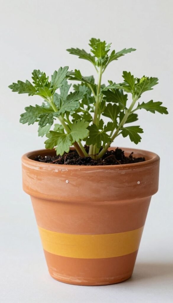Give your sad terracotta a glow up. Simple patterns and bold colors make even a grocery store herb look fancy.