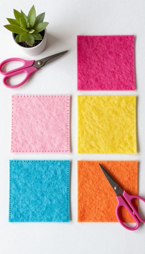 - Cut squares, layer with felt or batting, and glue or stitch.