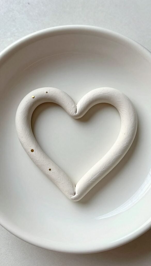 • Roll air-dry clay, cut a heart shape, gently curve edges.