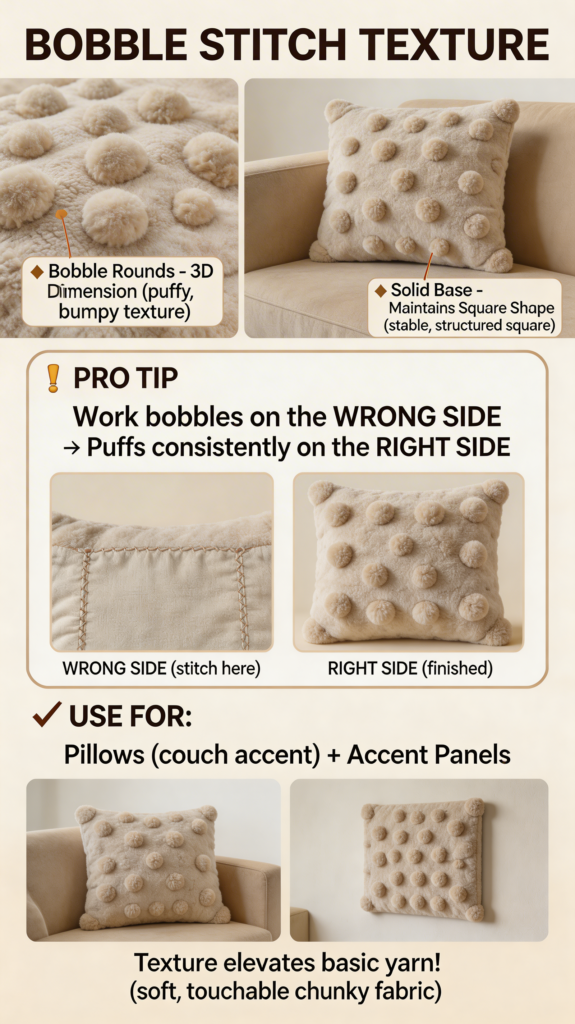 - Popcorn or puff stitches add yummy texture.