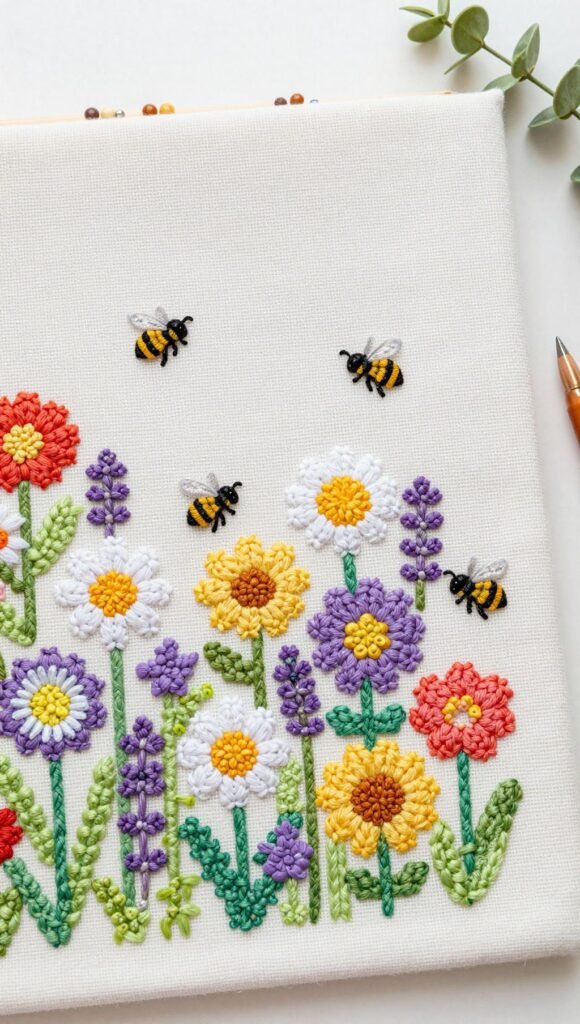 Soft blooms, busy bees, and that โI actually finished itโ glow. This pattern mixes easy stitches so you level up without the stress.