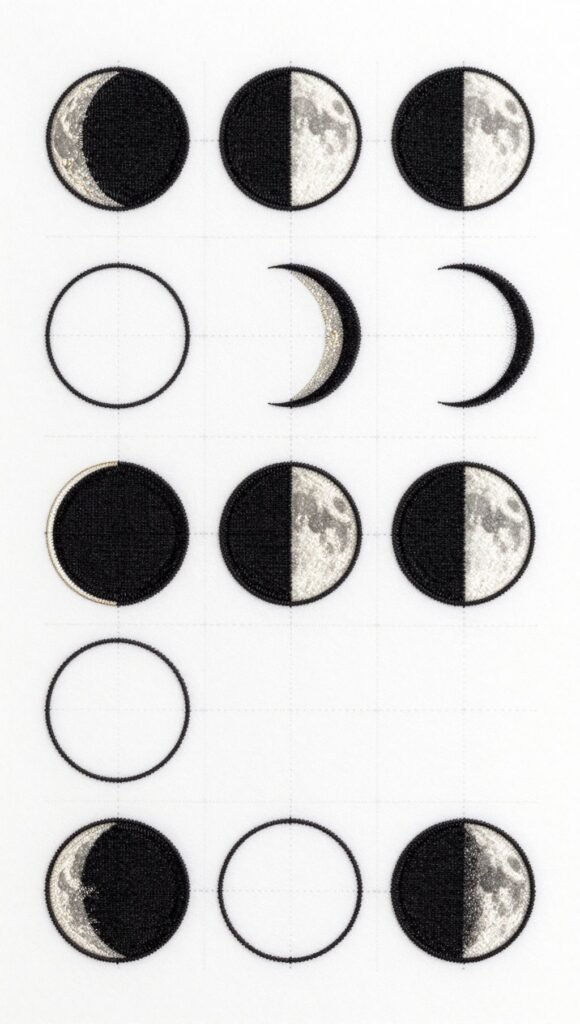 Pro tip: Outline each moon with a split stitch before filling for smoother edges.