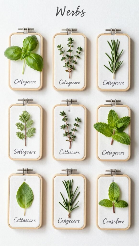 Turn your hoop into a tiny apothecary wall. Cute sprigs and tidy labels keep it fresh.