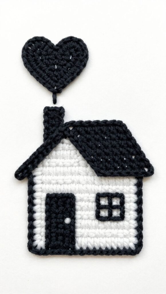 Wholesome cottage silhouette with a heart-shaped chimney puff. Cute without being cutesy.