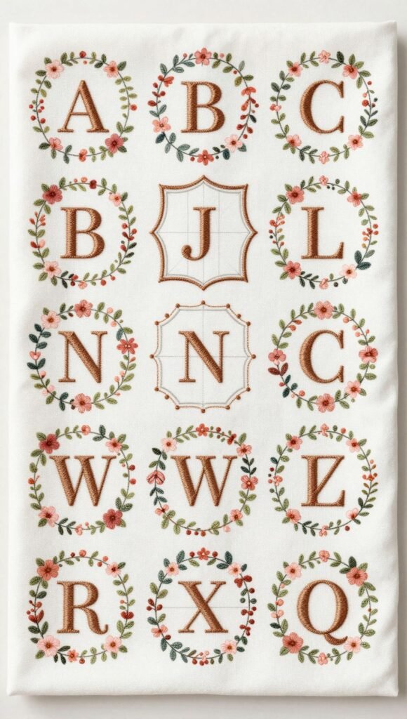Monogram everything like a polite maniac. Each letter nests inside a floral frame.