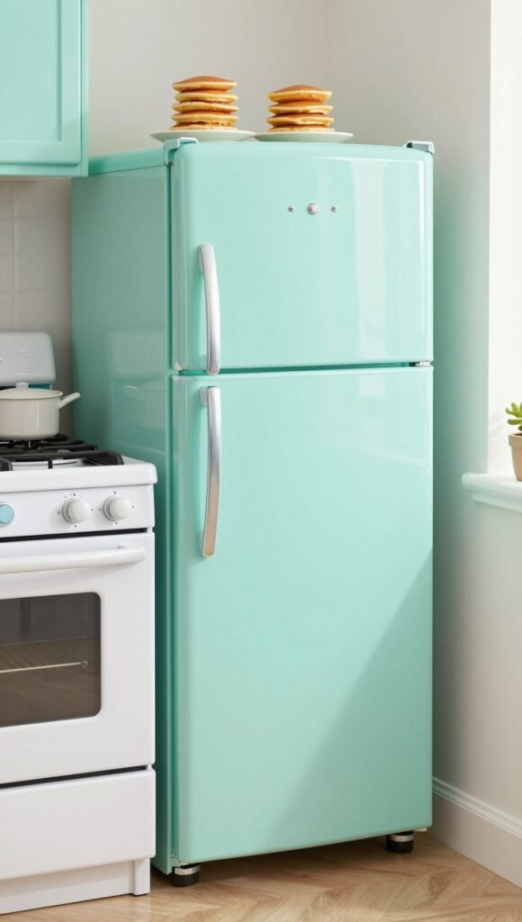 Channel diner charm with a mint fridge, stove, and sink. Itโs cute enough to make you cook tiny pancakes.