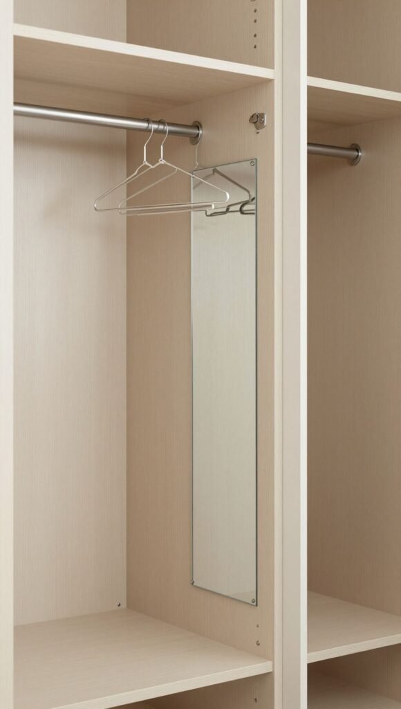 - Key details: Faux track, hanger bar graphic, mirror panel.