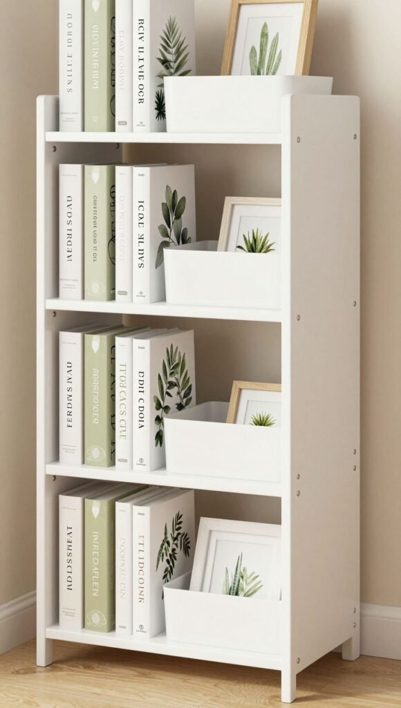 - Key details: Adjustable shelf heights, box inserts, plant and frame prints.