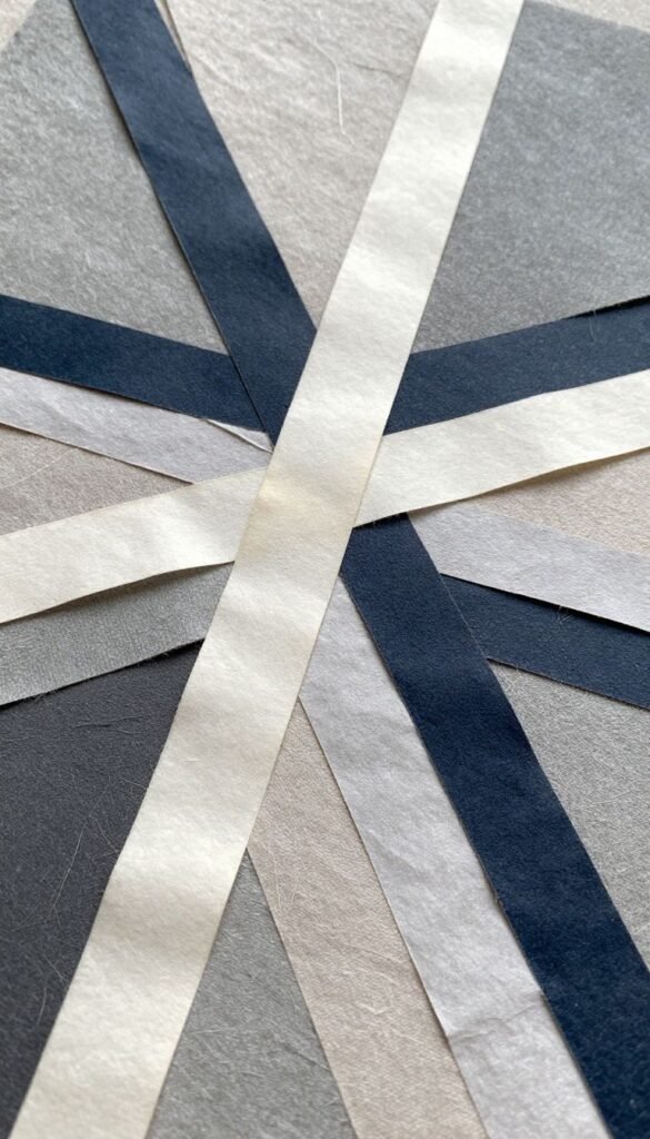 - Key points: Uses leftover strips, diagonal center strip for unity.