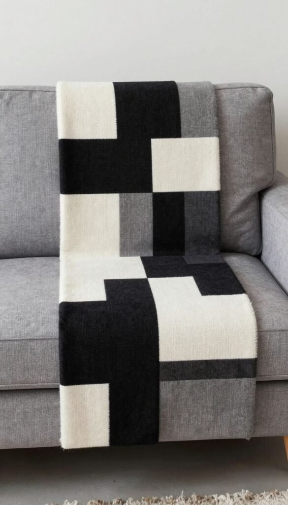 Chunky plus signs for the win. Oversized blocks piece quickly and look bold on a couch. Minimal cutting, maximum graphic swagger.